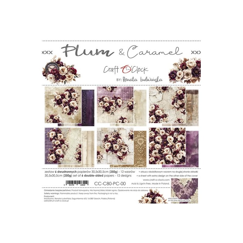 Lot de 6 feuilles recto-verso (12 motifs) en papier scrapbooking de haute qualité. Chaque feuille mesure 30,5 x 30,5 cm (12 x 12 pouces) et comporte une bande avec le nom. De plus, chaque lot contient une feuille avec un motif supplémentaire au verso. Grammage : 250 g/m². Ce produit est sans acide et sans lignine. Fabriqué en Pologne.